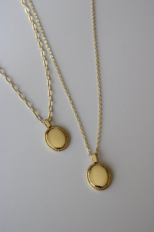 Engraved Oval Pendant Necklace